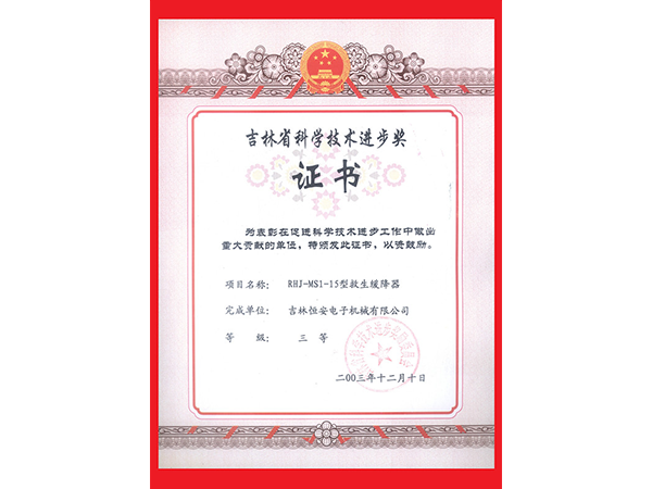 吉林省科學技術(shù)進步獎證書