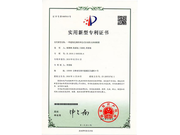 實(shí)用專利證書